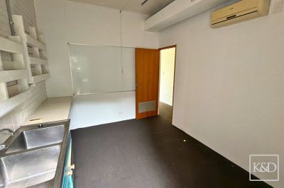 Featuring a main reception area with an office plus a sizable utility room/kitchen area, and this one has it's own toilet and hand basin.