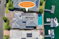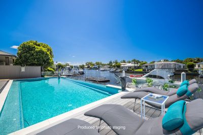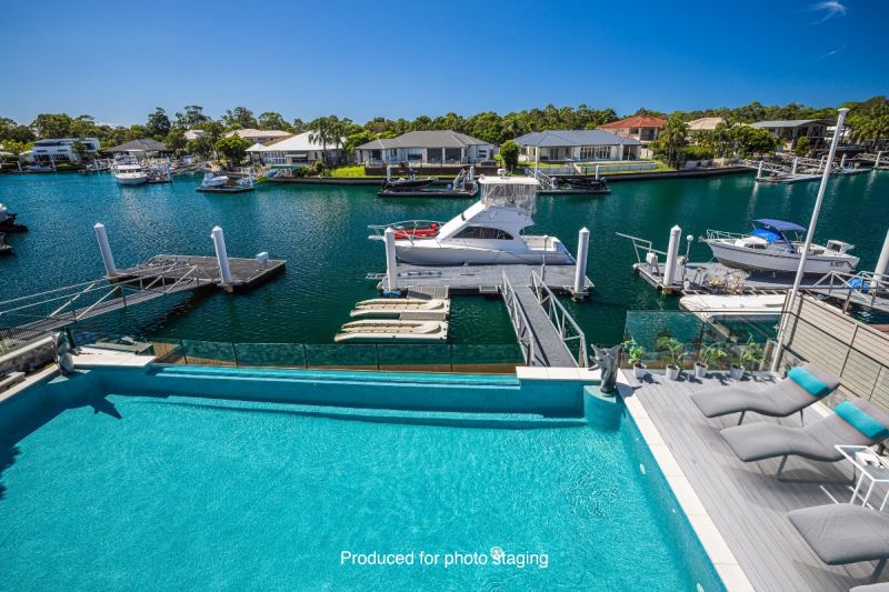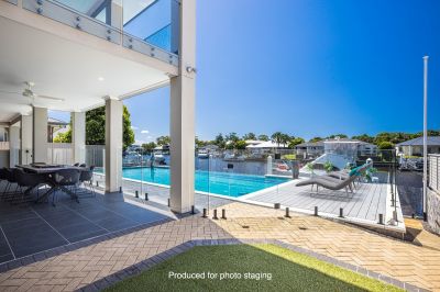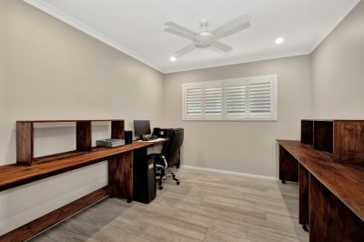 The home itself caters in its design for all your needs as the ground floor includes Media room, office, loads of cupboards, three (3) large bedrooms – one is a full guest suite/ 2nd master bedroom, butlers pantry with a fabulous kitchen that integrates with the outside living space and "All natural heated swimming pool". It is truly a place to meet, relax, or entertain in style.
