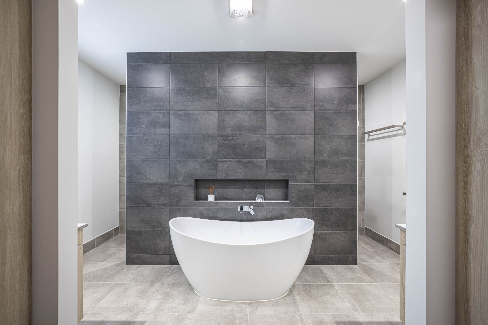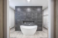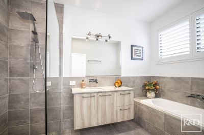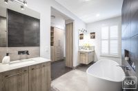 Second Master Suite. Oversized room, built in side tables & lights Walk in robe with oodles of storage thanks to the cabinetry, is the ensuite, which frankly makes the main bathroom look like an afterthought. Highlighted by a freestanding bath that speaks for itself (the photos will do the talking here). Screenless shower and twin vanities