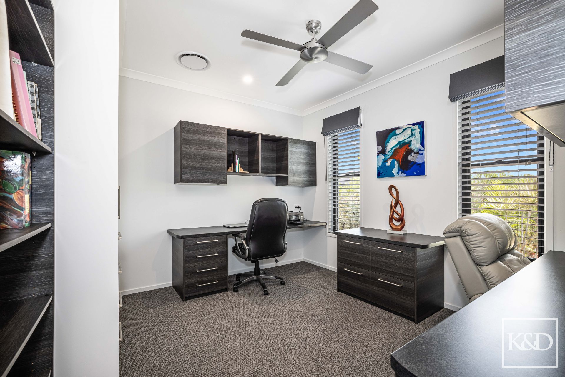Inside, quality is everywhere. It is no surprise, as the previous owner was a cabinet maker. All built-ins, walk-ins, pantry, kitchen cabinetry, drawers and entertainment units are in impeccable condition. Everything has been designed with function and finish in mind.