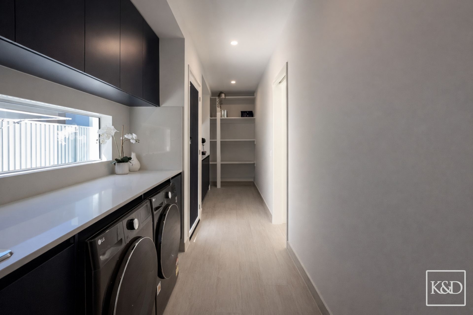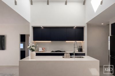 At its centre, the kitchen is a true statement designed for both entertaining and everyday living. Featuring premium Miele appliances, a striking Caesar stone island with waterfall edges, and a concealed butler's pantry, it's a space that balances form and function beautifully.