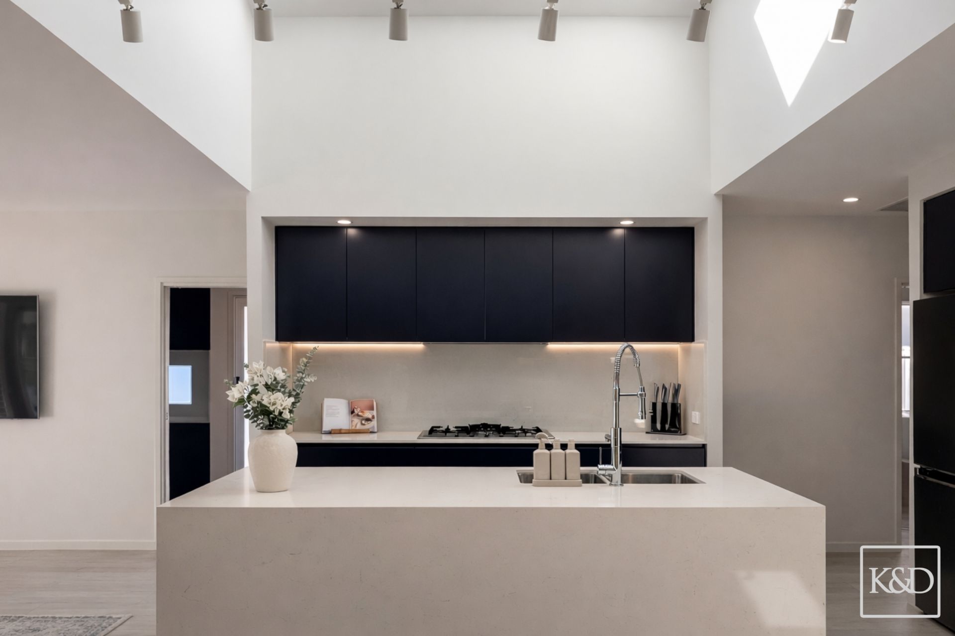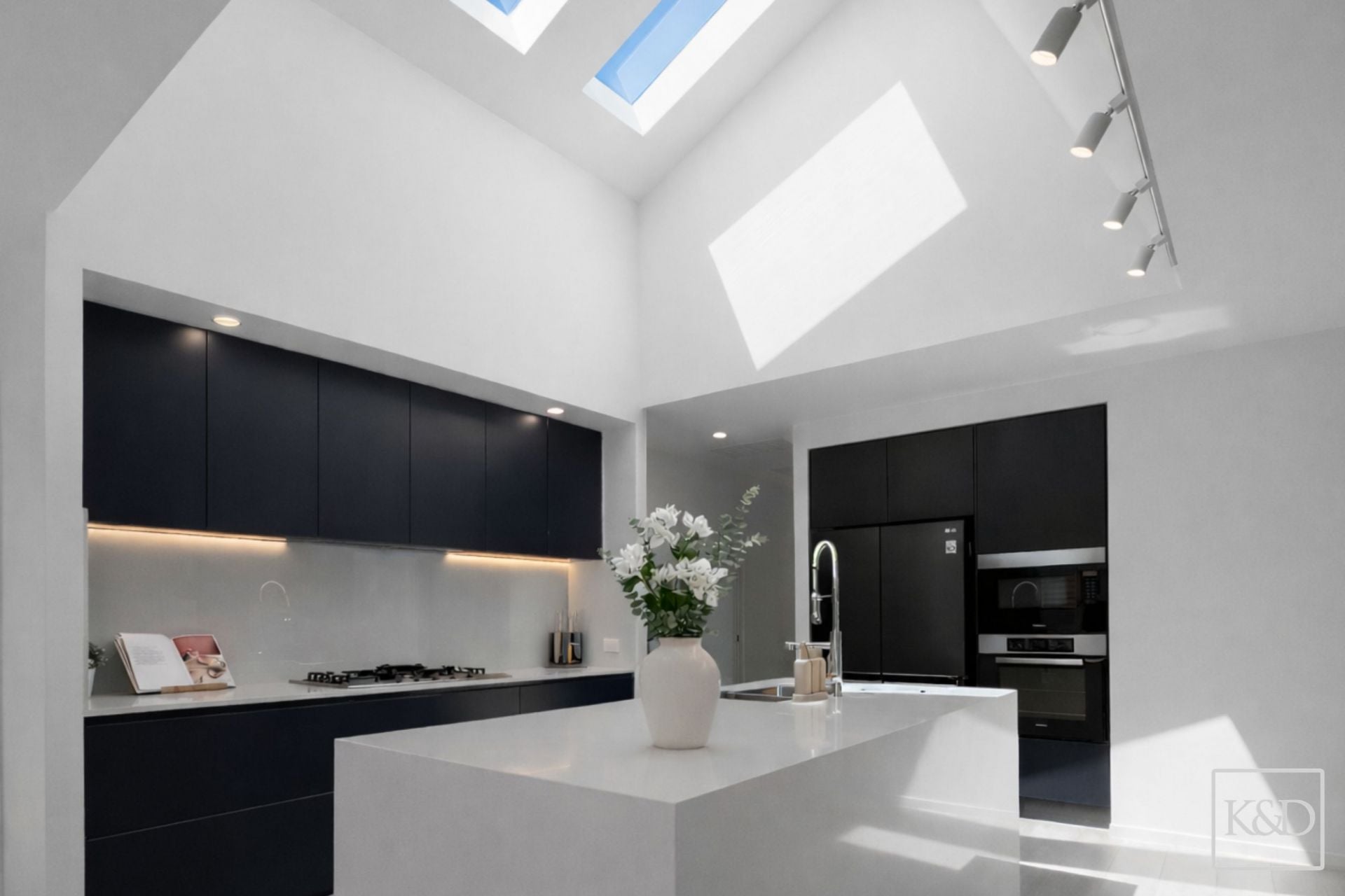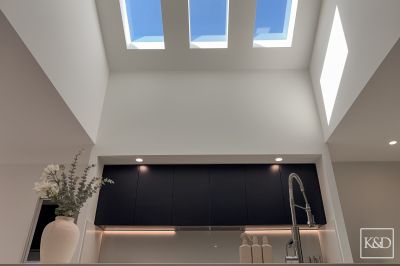 From the moment you arrive, the home makes an impression. A bold façade gives way to a light filled interior, where soaring ceilings and multiple skylights create an immediate sense of scale and calm. Every detail has been carefully considered, resulting in a home that feels both refined and inviting.