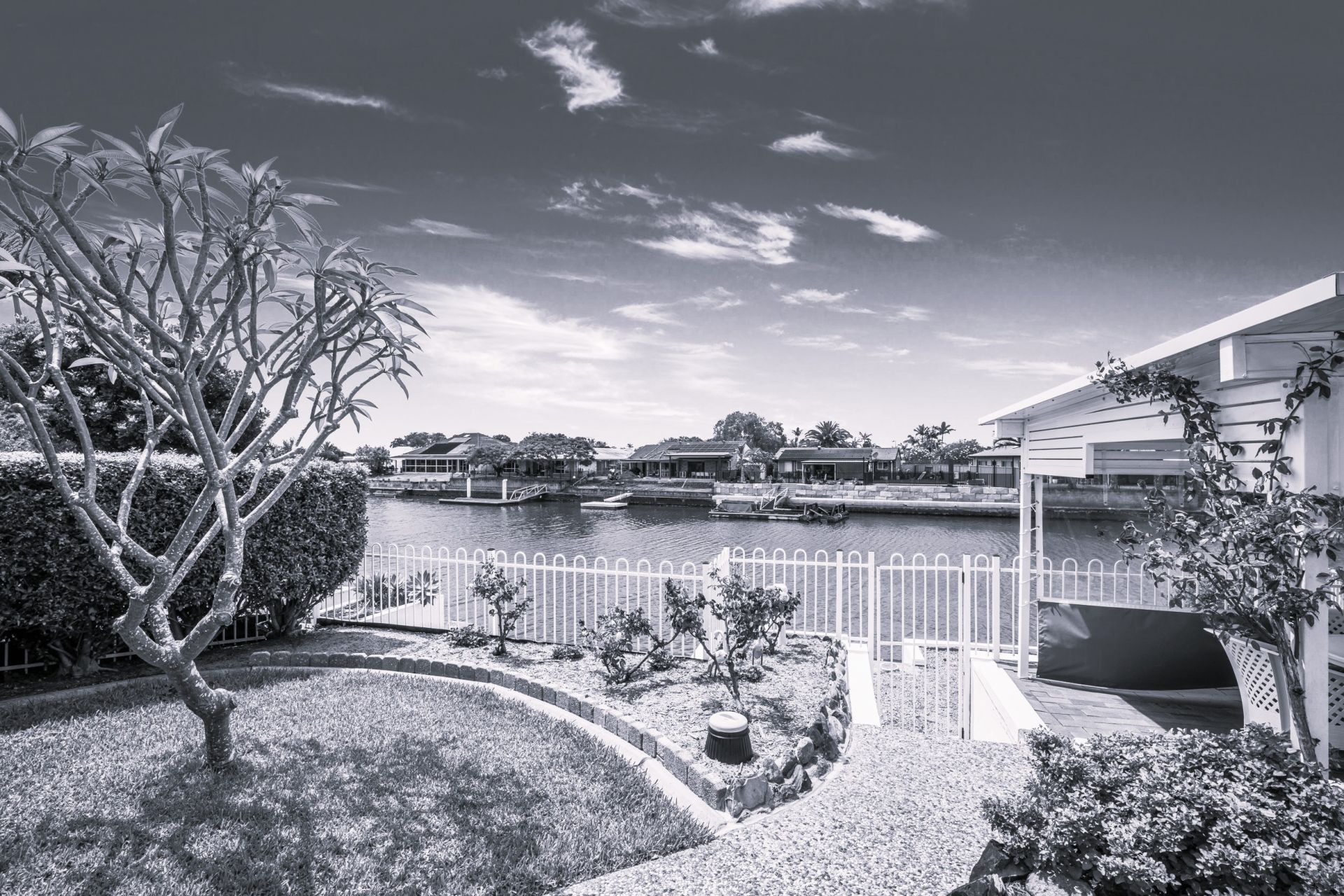 * Garden gazebo with long water views