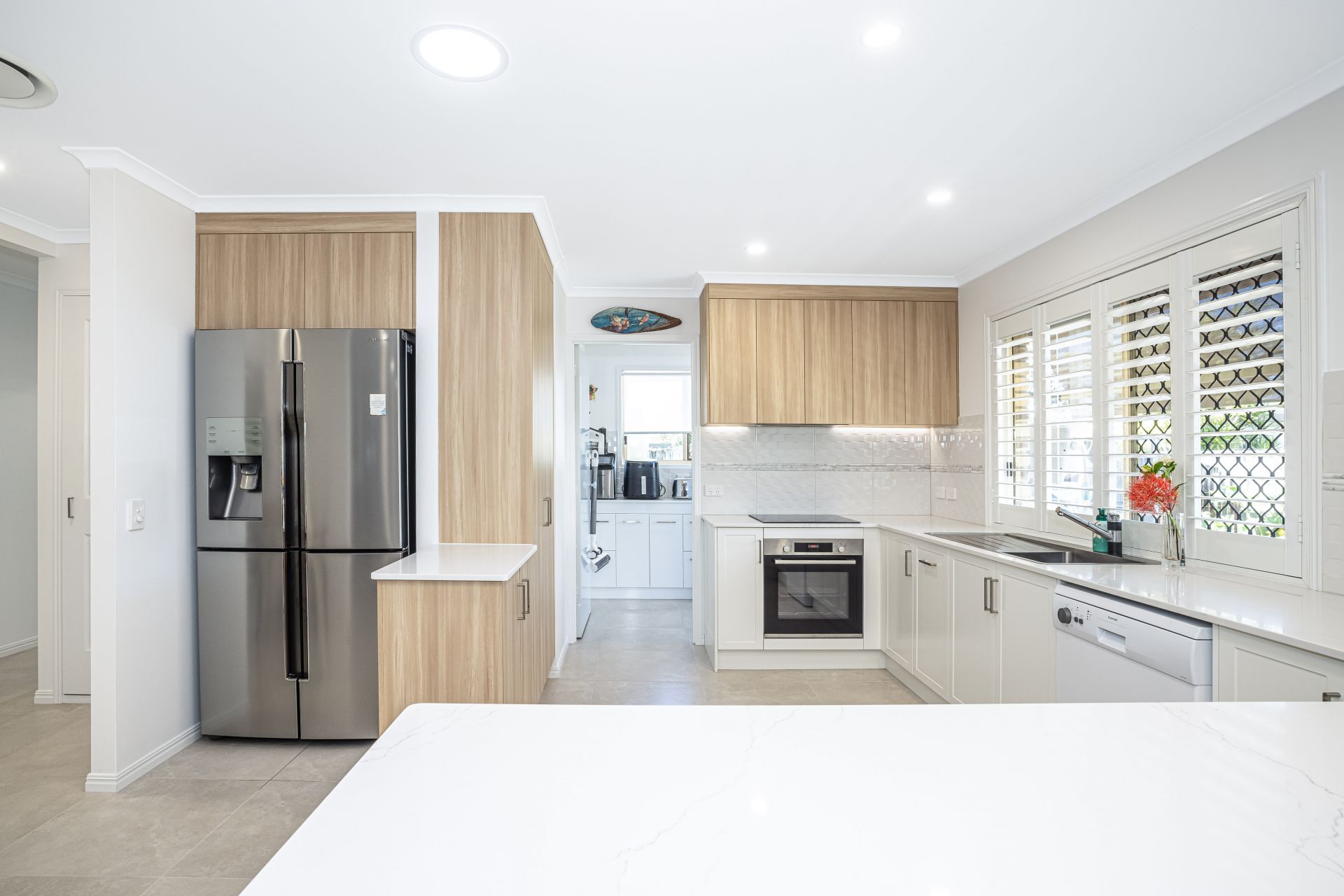 Step inside and be greeted by a bright, airy open-plan living area that flows seamlessly through to the brand-new kitchen, complete with stone benchtops, induction cooktop, and a cleverly designed butler's pantry. The thoughtful redesign has maximised space, with walls reconfigured to improve flow and functionality. The home features three generous bedrooms and two stunning bathrooms, all showcasing quality finishes and attention to detail.