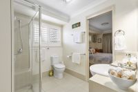 Master bedroom with mirrored wardrobe with access to both the bathroom and rear entertainment area. Bedroom 2 with fitted wardrobe, bathroom comprising panelled bath, shower and vanity unit with toilet, additional toilet and vanity unit.