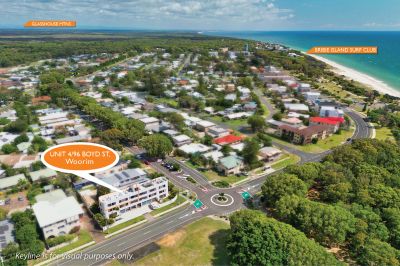 Situated across the road from the beach at Woorim, this 2 bedroom unit has an exclusive use roof top deck affording ocean glimpses and is directly opposite the dog beach entry. In a small complex of only 4 units it has a spacious living area with a balcony off the kitchen/living room and undercover car accomodation.