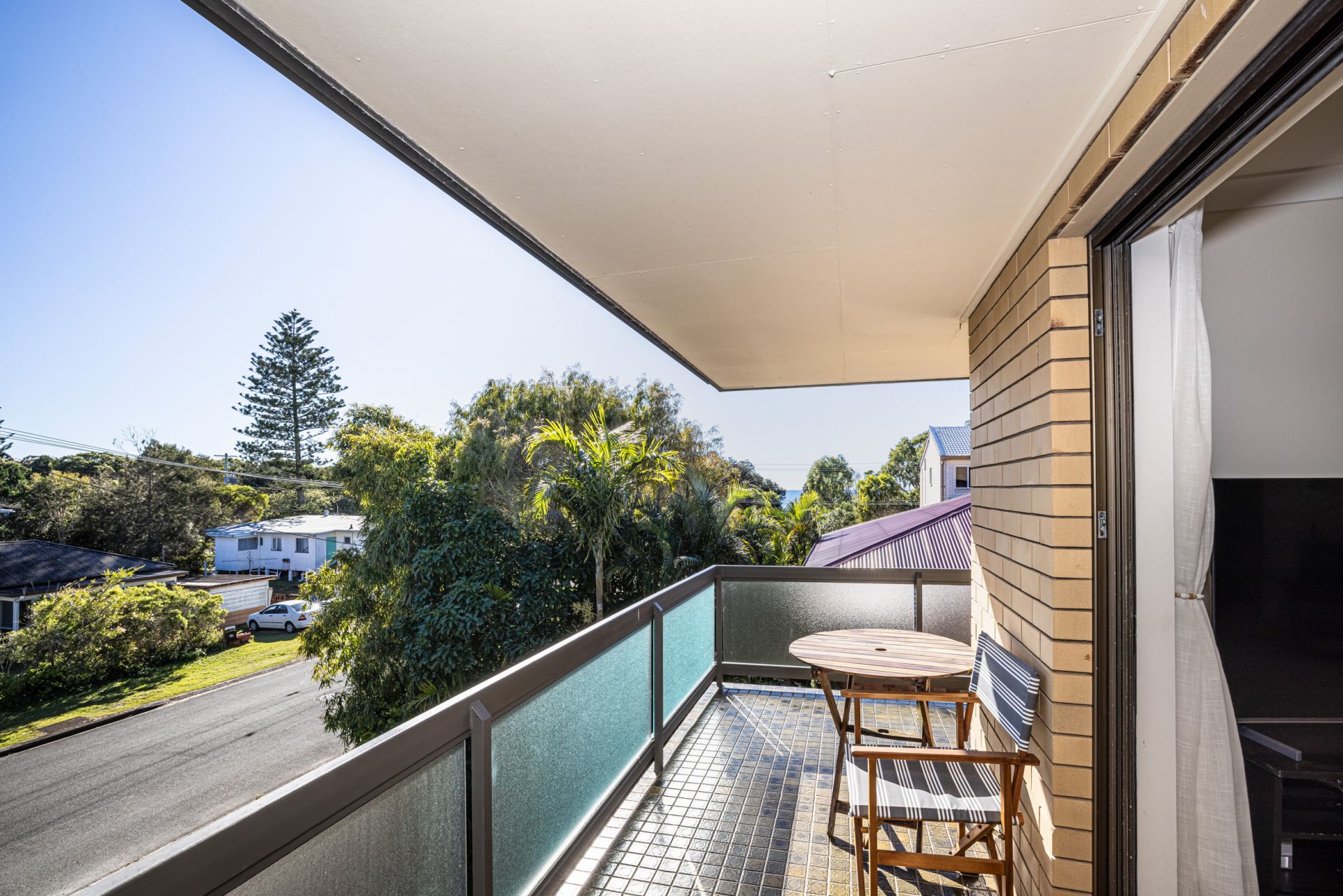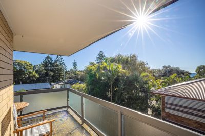 This North-East facing top floor unit in a small complex of only 4 units is presented in immaculate condition and is move in ready. Lovely views across the surrounding area and with ocean glimpses from the living area and wrap around balcony. Hear the waves lapping the beach!